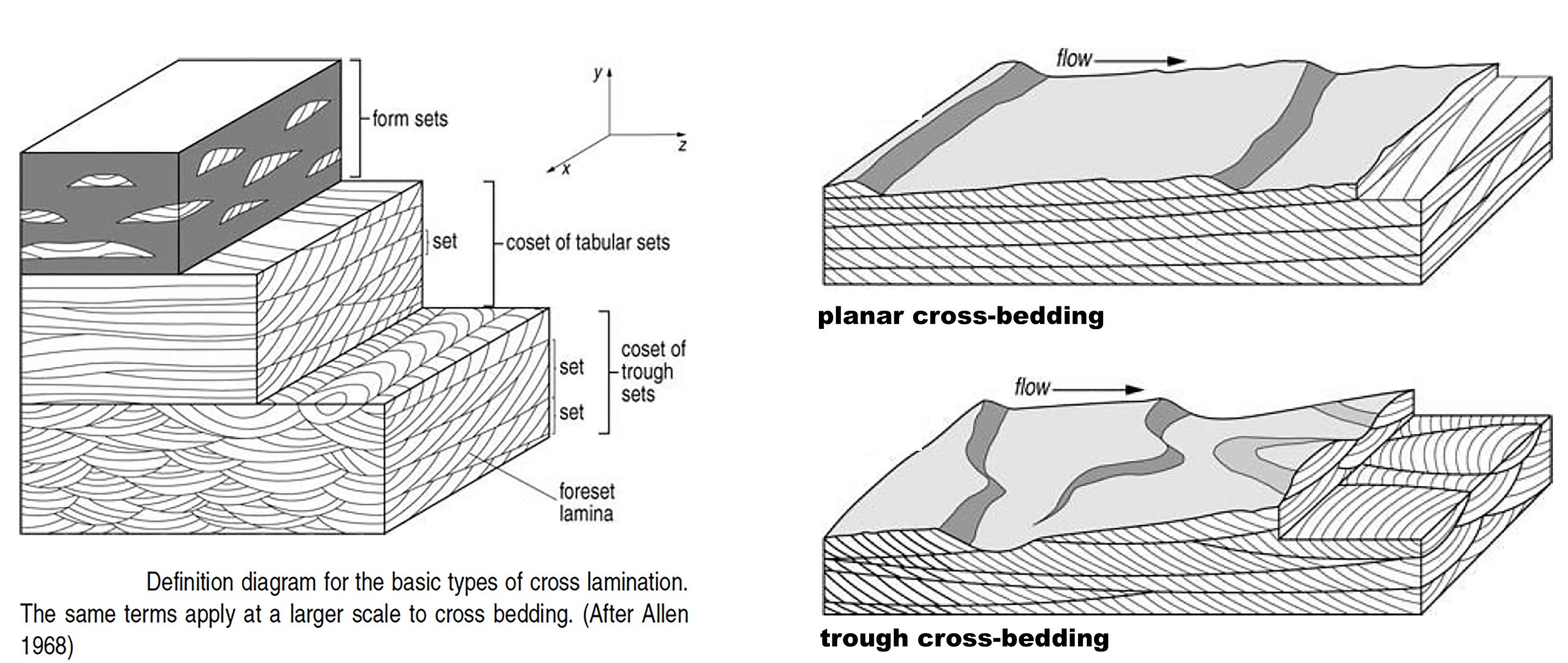 4. Structures sédimentaires | – Stratification | Ripple cross-lamination – Planar cross-stratification - Trough cross-stratification Plane-parallèle |
